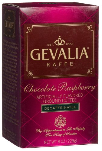 | 2 of 2 people found the following review helpful By This review is from: Gevalia Chocolate Raspberry Ground Coffee, Decaffeinated, 8-Ounce Packages (Pack of 3) (Grocery) I confess - I don't drink coffee much in the morning. But I love a warm cup on a cold evening, which is why I go with decaf.I ordered this particular coffee along with the Gevalia Dark Chocolate Truffle Ground Coffee, Decaffeinated, 8oz., 8-Ounce Boxes (Pack of 3) directly from Gevalia. I tried the Chocolate Truffle first, and enjoyed it a lot. Both are mild and do not leave me with an "acid tummy." I have had both in the evening, and have not experienced any sleeplessness. As far as taste goes, I enjoyed both the taste and the smell of this particular flavor. The raspberry is there without being overwhelming, and there is just a trace of the chocolate flavor. For those looking for a pleasant evening drink, I do recommend this. By Maryann M. Meador (Saint Marys, Georgia) - See all my reviews Amazon Verified Purchase This review is from: Gevalia Chocolate Raspberry Ground Coffee, Decaffeinated, 8-Ounce Packages (Pack of 3) (Grocery) very tasty coffee, but the paramount is just as good at a better price, so I'll be buying it in the future. By Amazon Verified Purchase This review is from: Gevalia Chocolate Raspberry Ground Coffee, Decaffeinated, 8-Ounce Packages (Pack of 3) (Grocery) I am a compounder of coffees. We like to blend caf and decaf coffees to get the right level for our needs. This coffee all by itself is a real treat, but drinking every day can be too much. So I like the hint of flavor that it provides when blended with a dark espresso roast. I have been drinking Gevalia since having lived in Sweden years ago for a number of years. This is not cheap stuff, but their coffee is consistent without question. |